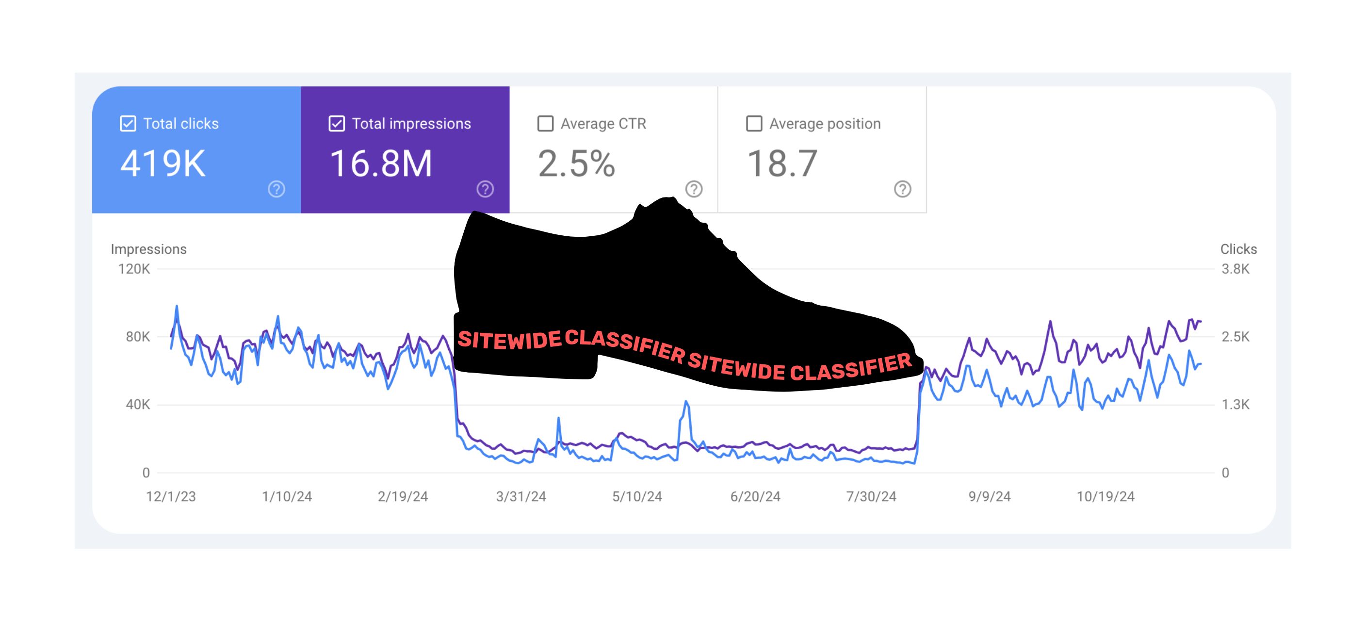 Analytics for HouseFresh.com show impressions on Google search